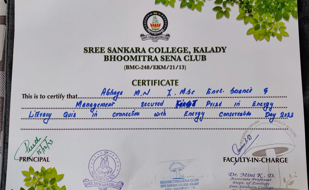 First prize winner in Energy Literacy Quiz in connection with Energy Conservation Day 2023