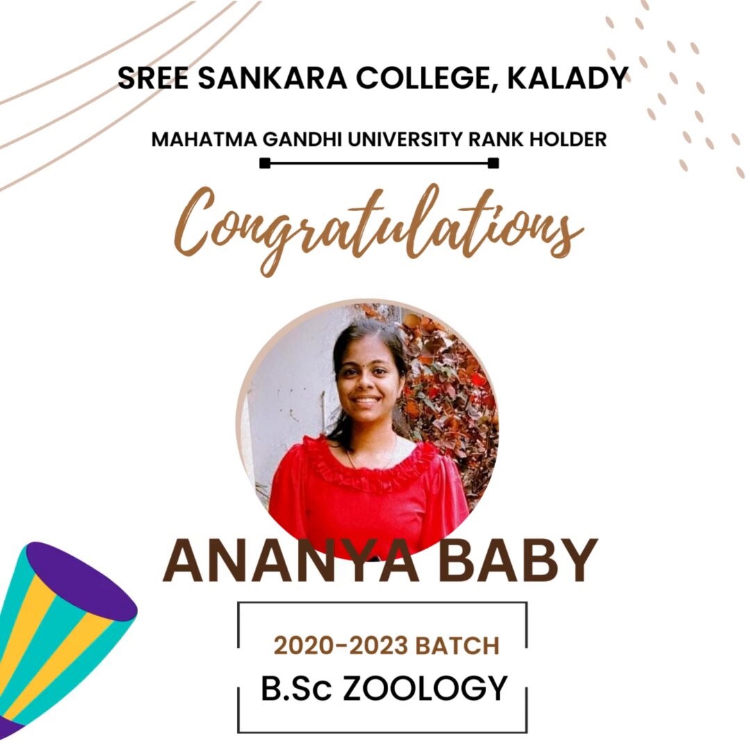 Ananya Baby secured Sixth Rank in MGU Examinations in 2023 (2020-2023 Batch).