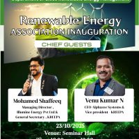 The program was also graced by Prof. Dr. Anilkumar M, Principal of Sree Sankara College, Kalady along with faculty members and students of the department. The event commenced with a welcome address, followed by the inauguration ceremony and keynote speeches by the chief guests.The speakers shared valuable industry insights and encouraged students to actively participate in academic and co-curricular activities, thereby enhancing their knowledge and skills in the field of renewable energy.The inauguration marked a significant milestone for the department, laying a strong foundation for future initiatives, innovation, and collaborative learning under the association.