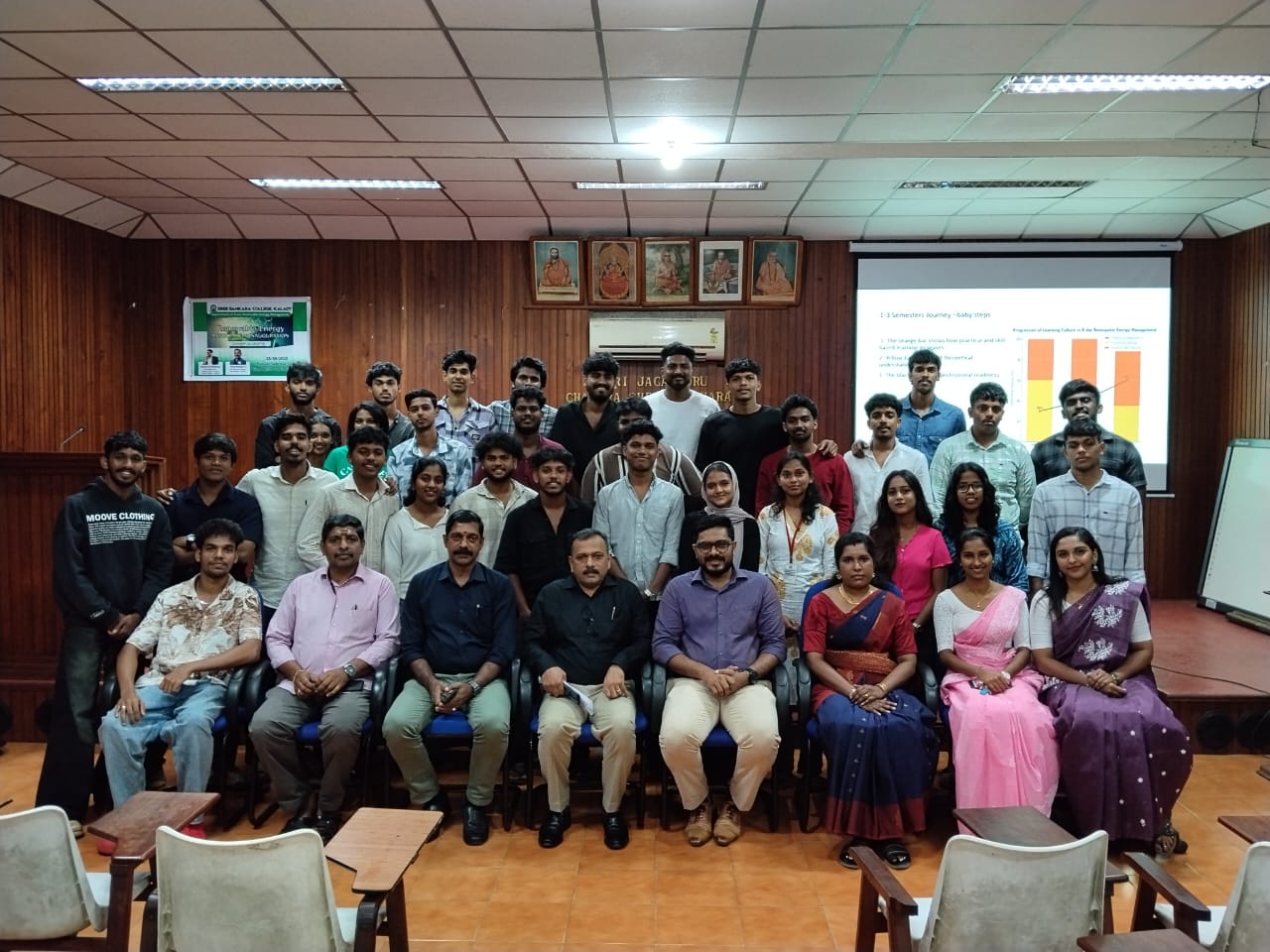The Department of B.Voc Honours in Renewable Energy Management successfully organized the inauguration of its Department Association on 23-10-2025 at Sree Sankara College, Kalady.The function was formally inaugurated by Mr. Venukumar N, CEO of Alphazee Systems, and Mr. Mohammad Shaffeeq, Managing Director of Illumine Energy Pvt. Ltd. Their presence and inspiring words added great value to the event, emphasizing the growing importance of renewable energy and the need for skilled professionals in the sector.