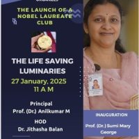 The Department of Microbiology at Sree Sankara College, Kalady, proudly launched the “Nobel Laureate Club – The Life Saving Luminaries” on 27th January 2025. The event commenced with a warm Welcome Address by Anjela Maria, setting the stage for the insightful discussions to follow.