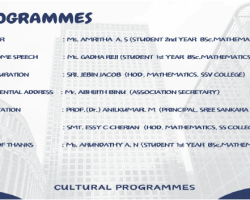 Post the formal inauguration, Sri Jebin Jacob delivered an enlightening talk on “Application of Fuzzy Graphs in Traffic”, which captivated the audience with its innovative insights and practical applications in real-world scenarios. The program concluded with vibrant cultural performances by the students, showcasing their talent and creativity. Arundathy A N, a firstyear student, delivered the vote of thanks, expressing gratitude to all who contributed to the success of the event.