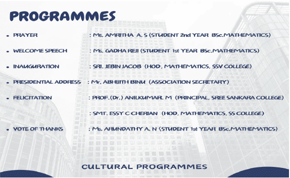 Post the formal inauguration, Sri Jebin Jacob delivered an enlightening talk on “Application of Fuzzy Graphs in Traffic”, which captivated the audience with its innovative insights and practical applications in real-world scenarios. The program concluded with vibrant cultural performances by the students, showcasing their talent and creativity. Arundathy A N, a firstyear student, delivered the vote of thanks, expressing gratitude to all who contributed to the success of the event.