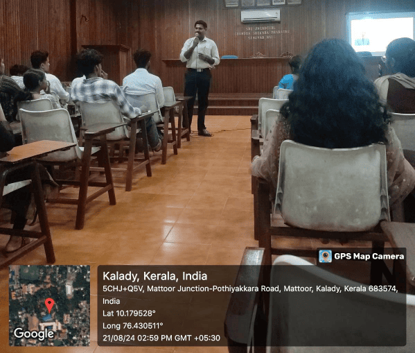 The Department of Mathematics, Sree Sankara College, Kalady, successfully inaugurated its Mathematics Association, “Ciphers – Unravelling Complex Problems”, on 21st August 2024 at 2 PM in the Chandrasekhara Bharathi Seminar Hall. The event was graced by the presence of Sri Jebin Jacob, Head of the Department of Mathematics, Sree Sankara Vidyapeetom College, Valayanchirangara, as the chief guest.