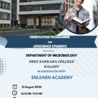 The Department of Microbiology, Sree Sankara College, Kalady, in association with Enlearn Academy organized an orientation programme titled “Navigating Your Future: Central University Admission” on 21st August 2024.. The event was specifically aim to provide guidance and direction to life science students interested in pursuing higher education at central universities.