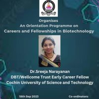 On 18th September 2023, the Department of Biotechnology, Sree Sankara College, Kalady, organized an Orientation Programme on “Careers and Fellowships in Biotechnology” at 11:00 AM in the Mini Seminar Hall, SF Block. The session was delivered by Dr. Sreeja Narayanan, DBT/Wellcome Trust Early Career Fellow at Cochin University of Science and Technology, who shared her expertise and experiences to guide students on academic and research opportunities in the field of biotechnology.