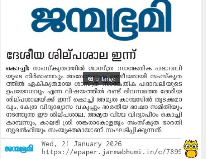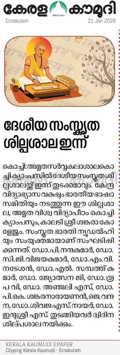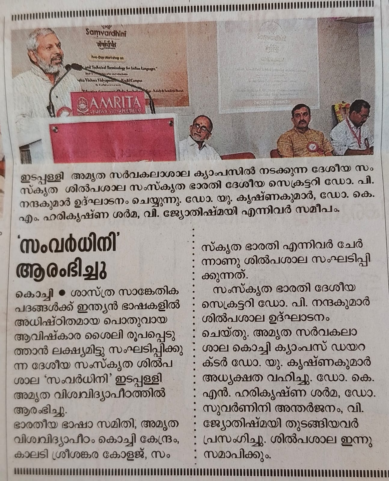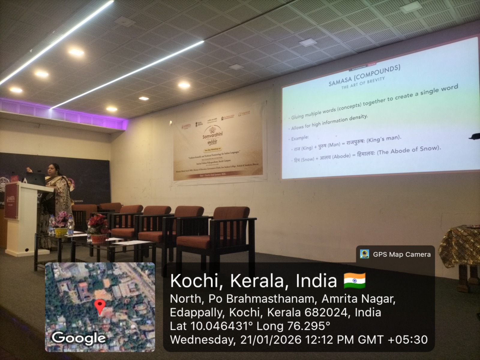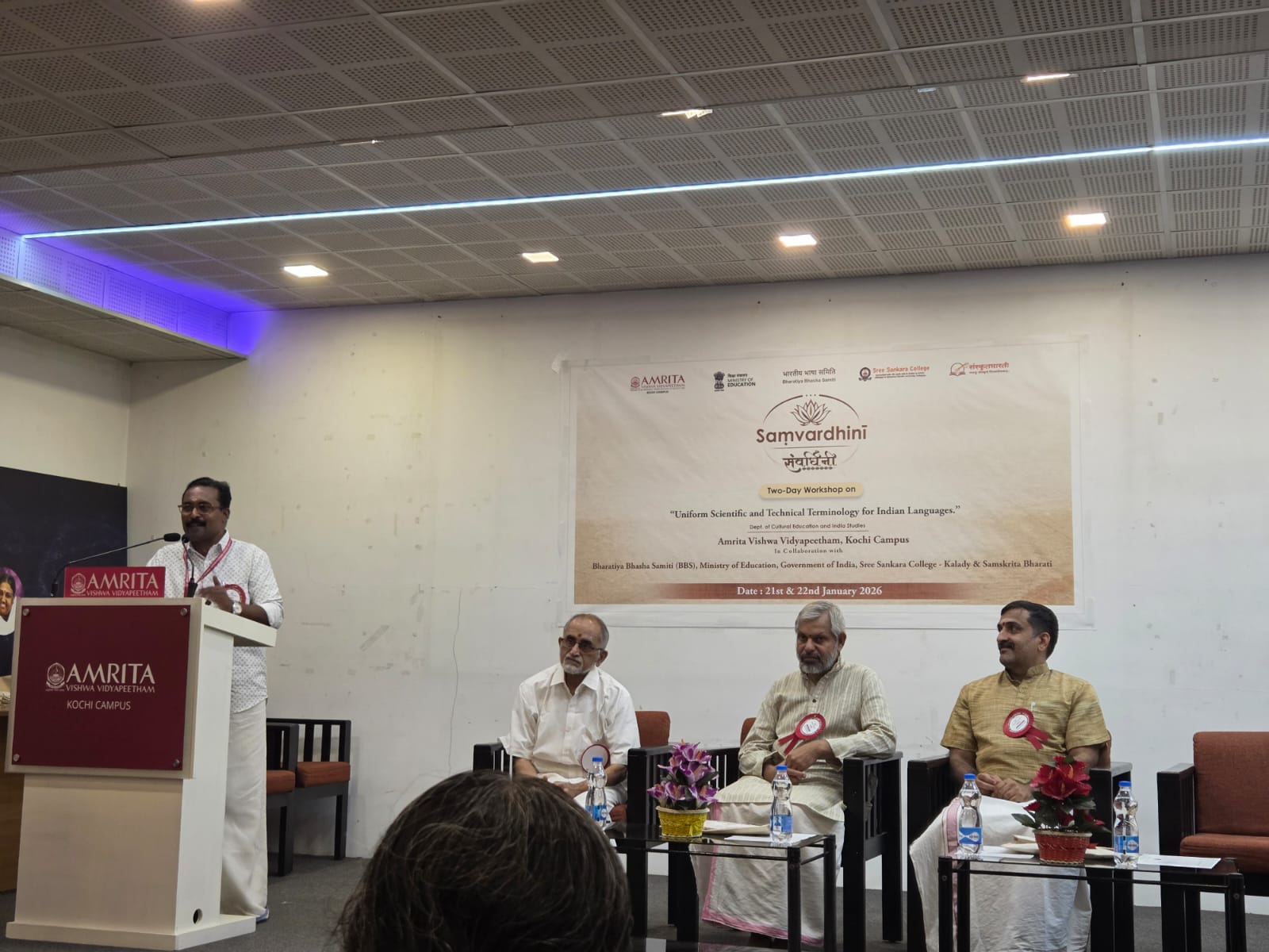 The Department of Sanskrit, Sree Sankara College, Kalady, in collaboration with Amrita Vishwa Vidyapeetham, Kochi Campus, successfully organized a two-day national workshop titled “Samvardhini” on 21st and 22nd January 2026. The workshop focused on “Uniform Scientific and Technical Terminology for Indian Languages” and was conducted with the support and sponsorship of the Bharatiya Bhasha Samiti (BBS), Ministry of Education, Government of India.