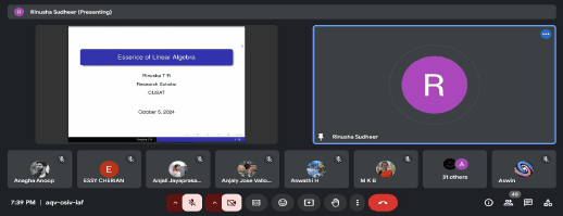 The inaugural session of the online webinar series, hosted by the Ciphers Mathematics Association with support from the IQAC Smart Scheme, was held on October 5, 2024. The chosen topic, “Essence of Linear Algebra,” aimed to provide attendees with foundational insights into linear algebra and its real-world applications.