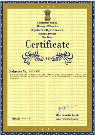 Sree Sankara College uploads data every year towards AISHE survey. The certificates of the laest survey is given below.