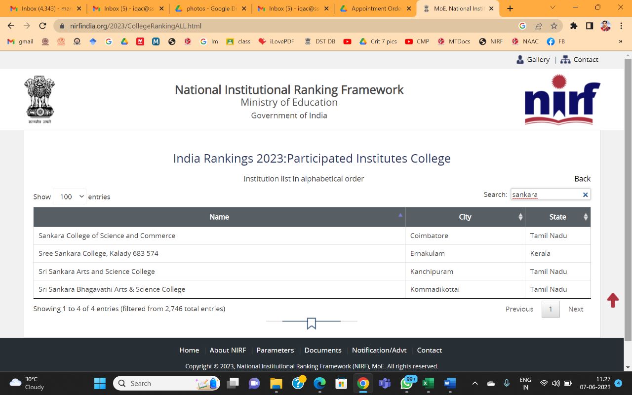 Sree Sankara College participated in NIRF 2023 for the first time and ranked between 201-300.