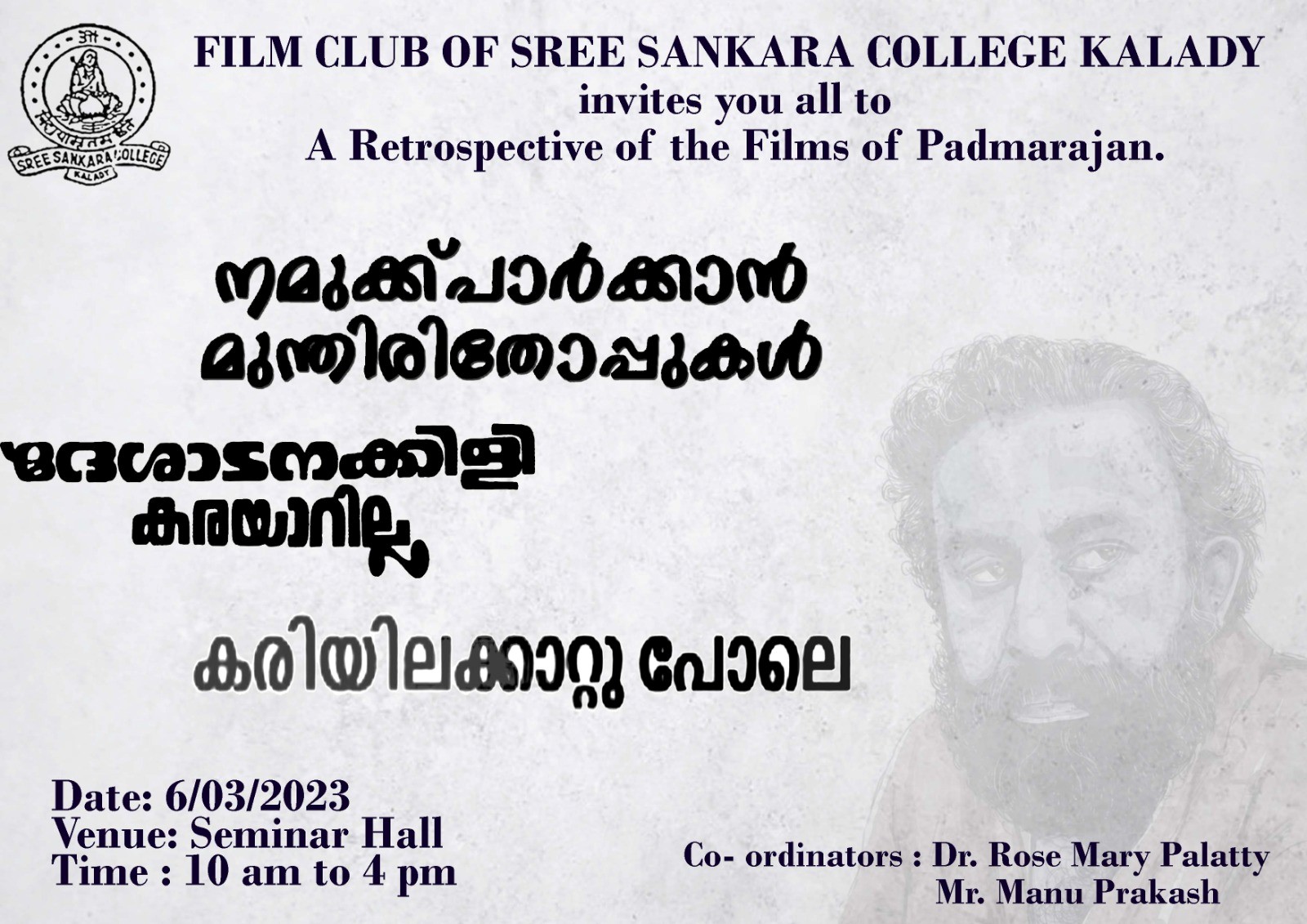 The Film Club of Sree Sankara College, a forum of film enthusiasts was inaugurated on 18/01/2019 with a talk by famous film critic and academician Dr. T Muralidharan.